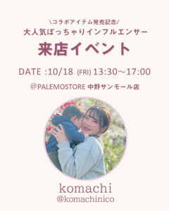 本イベントではkomachiさん本人による接客&店頭販売を行います。